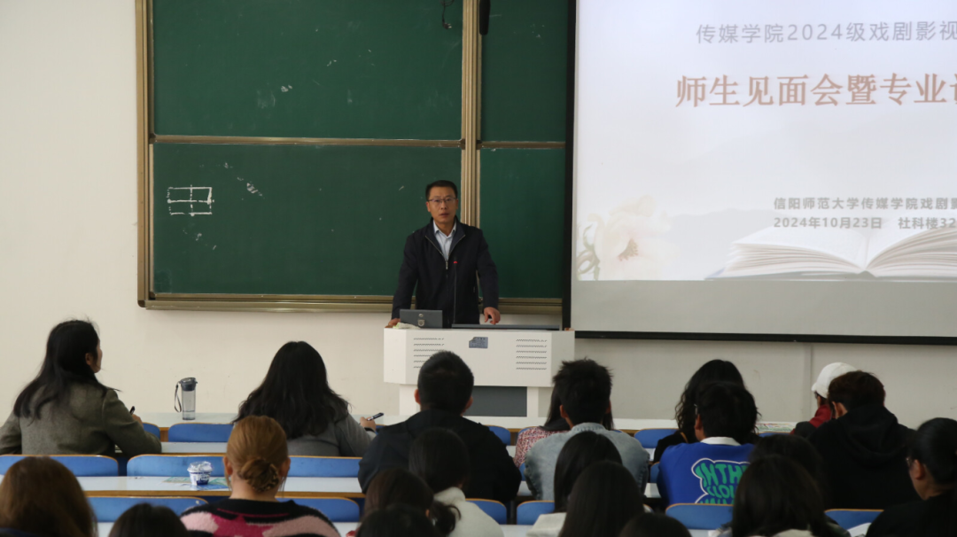 10月23日上午,太阳集团tyc4633在社科楼325教室开展2024级戏剧影视文学专业师生见面会暨专业认知会。学院党委书记姚新春、副书记余艳楷、戏剧影视系主任段金龙出席会议,24级戏剧影视文学专业全体师生参加会议,会议由余艳楷主持。