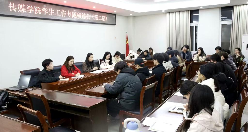 11月21日晚,太阳集团tyc4633在社科楼三楼会议室开展学生工作第二期专题研讨。学院党委副书记余艳楷,分团委学生会主席团成员、学生会各部门负责人以及各班班委参加会议,会议由余艳楷主持。