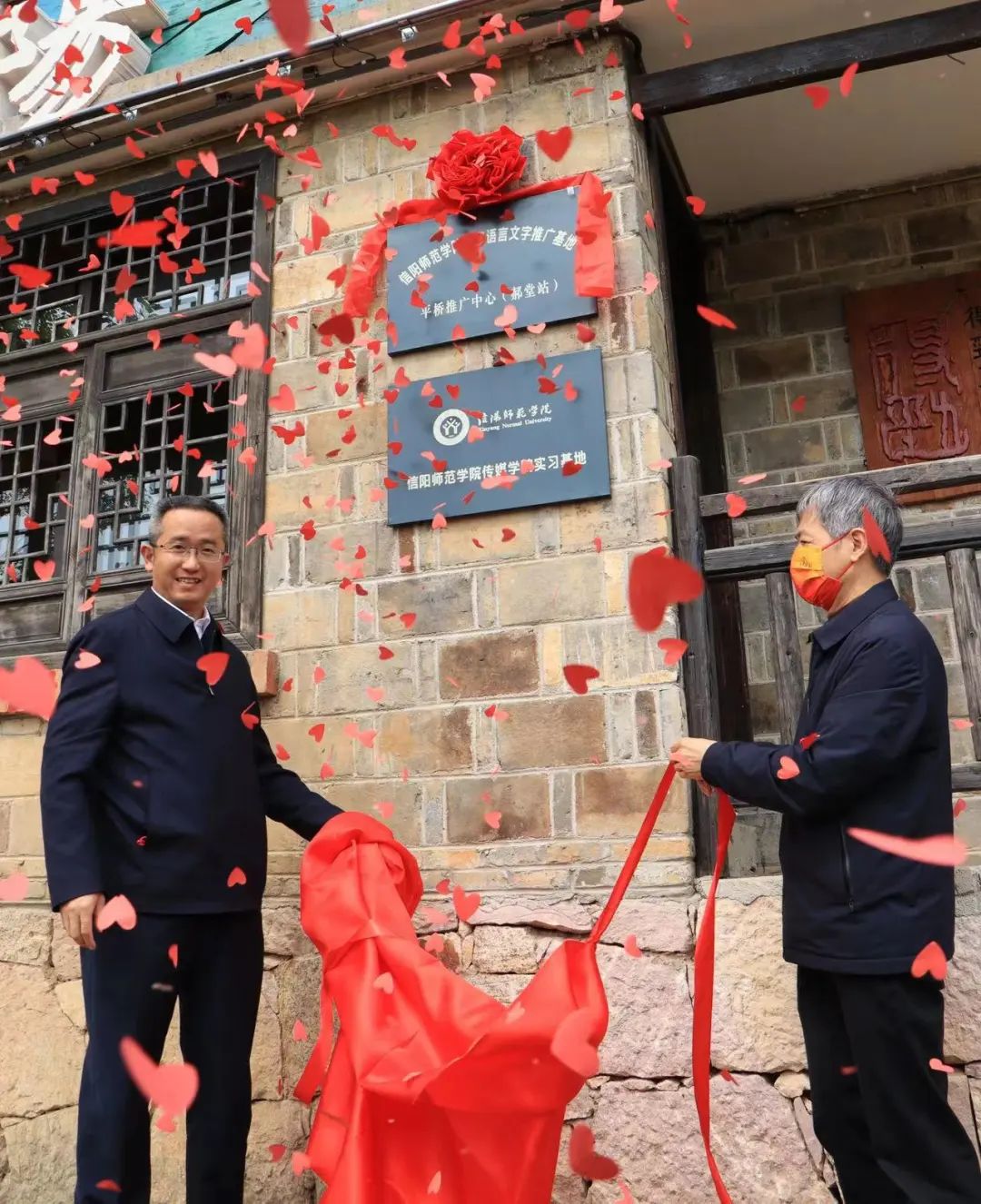 为助力乡村文化振兴,积极构建高校和地方密切联系的纽带和桥梁,4月16日,我校国家语言文字推广基地平桥推广中心(郝堂站)、信阳师范学院太阳集团tyc4633大学生就业实践基地揭牌仪式在平桥区郝堂村举行。校长李俊,平桥区区长董立淳与平桥区相关单位,我校校长办公室、招生就业处、太阳集团tyc4633等单位负责同志参加揭牌仪式。仪式由平桥区委常委、宣传部长、副区长霍昱廷主持。共同开启平桥区与信阳师范学院校地合作的崭新篇章。
