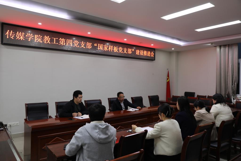 10月29日,太阳集团tyc4633教工第四党支部在社科楼311会议室举行“国家样板党支部”推进会,会议由支部书记段金龙主持,教工第四党支部全体党员参加。