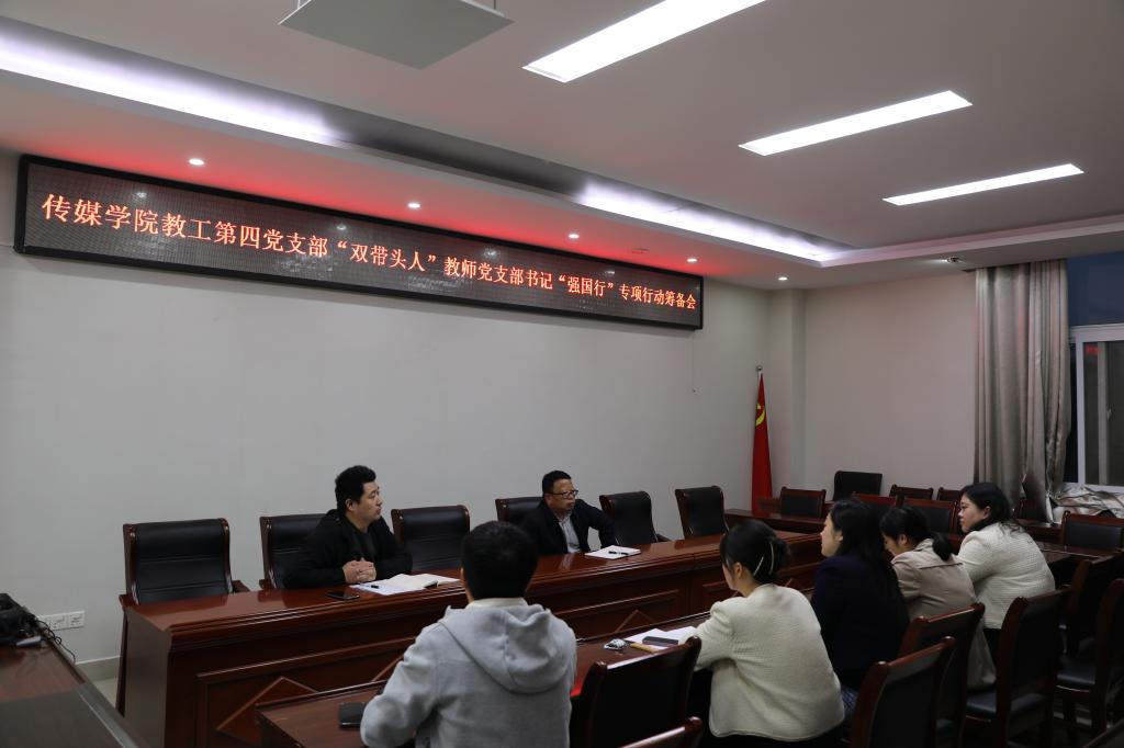 10月29日,太阳集团tyc4633教工第四党支部在社科楼311会议室举行“双带头人”教师党支部书记“强国行”专项行动筹备会,会议由支部书记段金龙主持,教工第四党支部全体党员参加。
