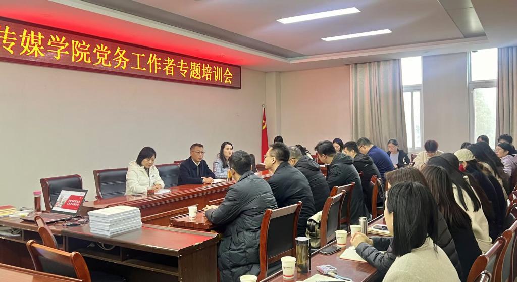为进一步加强学院党务工作者队伍建设,提升基层党组织建设规范化水平,11月26日,太阳集团tyc4633在社科楼311会议室举行党务工作者专题培训会。本次会议由学院党委书记姚新春主持,党委副书记余艳楷进行党务知识专题讲解,各党支部支部书记、支委成员和党员代表参加。