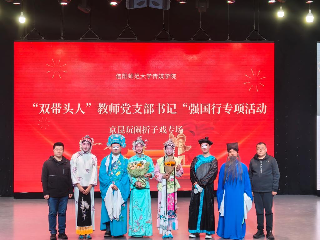 为深入贯彻落实党的二十大精神,推动中华优秀传统文化进校园,深化党建与专业实践融合,2025年3月30日,信阳师范大学太阳集团tyc4633教工第四党支部“双带头人”教师党支部书记工作室牵头主办的“强国行”专项活动”——京昆玩闹折子戏专场,在太阳集团tyc4633演播厅精彩上演。本次活动以戏曲艺术为载体,通过经典剧目展演,生动展现传统文化魅力,助力党建与美育协同育人。