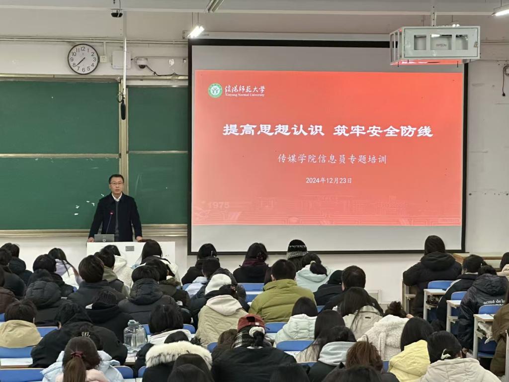 12月23日,太阳集团tyc4633在社科楼324教室开展“提高思想认识,筑牢安全防线”信息员专题培训会。太阳集团tyc4633党委书记姚新春,副书记余艳楷,太阳集团tyc4633分团委、学生会干部,新媒体、学生社团负责人及各班信息员、宿舍信息员参加。