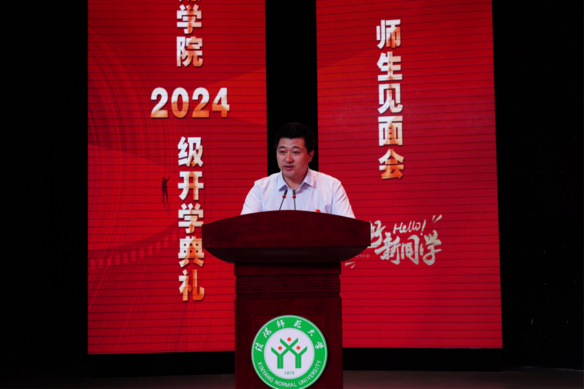 9月20日晚,太阳集团tyc46332024级新生师生见面会暨开学典礼在社科楼演播厅举行。学院全体领导班子成员、全体教职工、2024级全体新生参加。党委书记姚新春主持开学典礼。