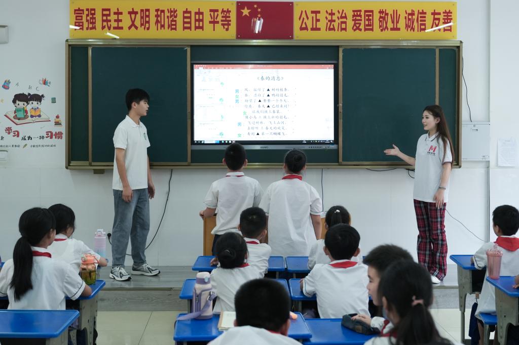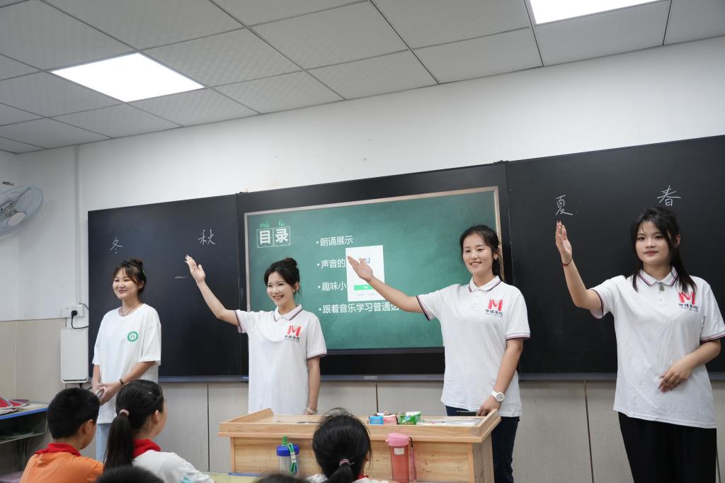 为了确保推普活动的效果与质量,“诵读中国”志愿服务队的师生们根据小学生的年龄特点和具体学段,精选诵读作品、设计推普微课、认真排练试讲,进行了扎实充分的筹备工作。在活动过程中,六支服务队分别走进对口小学的“多彩课堂”,与小学生们一起练习即兴表达、诵读经典诗文、学习普通话知识、了解语言文字规范,共同训练提升国家通用语言文字的应用能力,感受体悟中华优秀传统文化的厚重典雅与博大精深。队员们通过生动细致的讲解示范、富有趣味的口语游戏,帮助小学生们在轻松愉快的氛围中掌握正确的普通话发音和用语规范。此外,每支服务队还现场展示2-3个经典诵读作品,结合诵读内容,为小学生们讲述相关的历史故事和文化背景,激发他们的学习兴趣。
