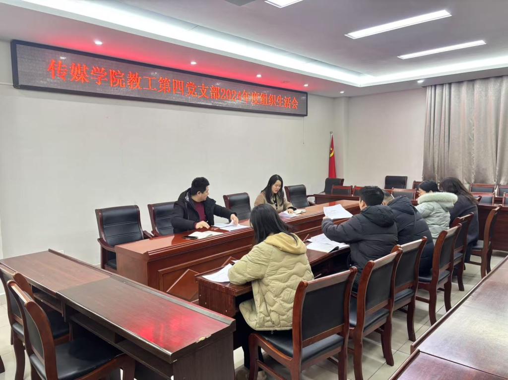 1月16日,太阳集团tyc4633教工第四党支部在社科楼311召开2024年度组织生活会。教工第四党支部全体党员参加,学院党委副书记余艳楷以普通党员身份参加,会议由党支部书记段金龙主持。