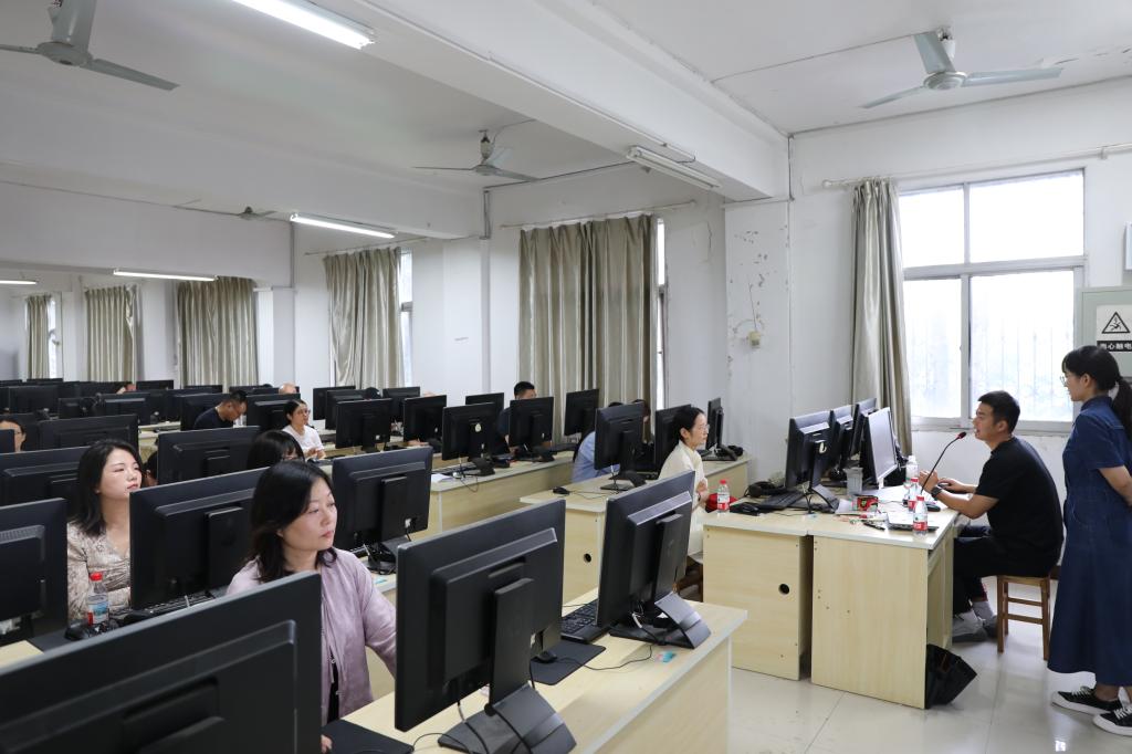 6月25日下午,太阳集团tyc4633在教五楼304机房举行超星智慧课程平台专题培训。副院长周强、田华、陈长旭及全体专任教师参加培训,培训由田华主持。