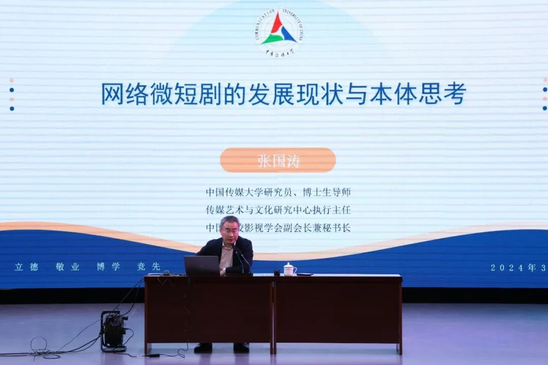 讲座最后,张国涛强调了网络微短剧是根据移动终端“量身打造”的剧集体裁,它的本体特征不仅是网络文学影视化的最新实践,也是剧集体裁创新的媒介实验。