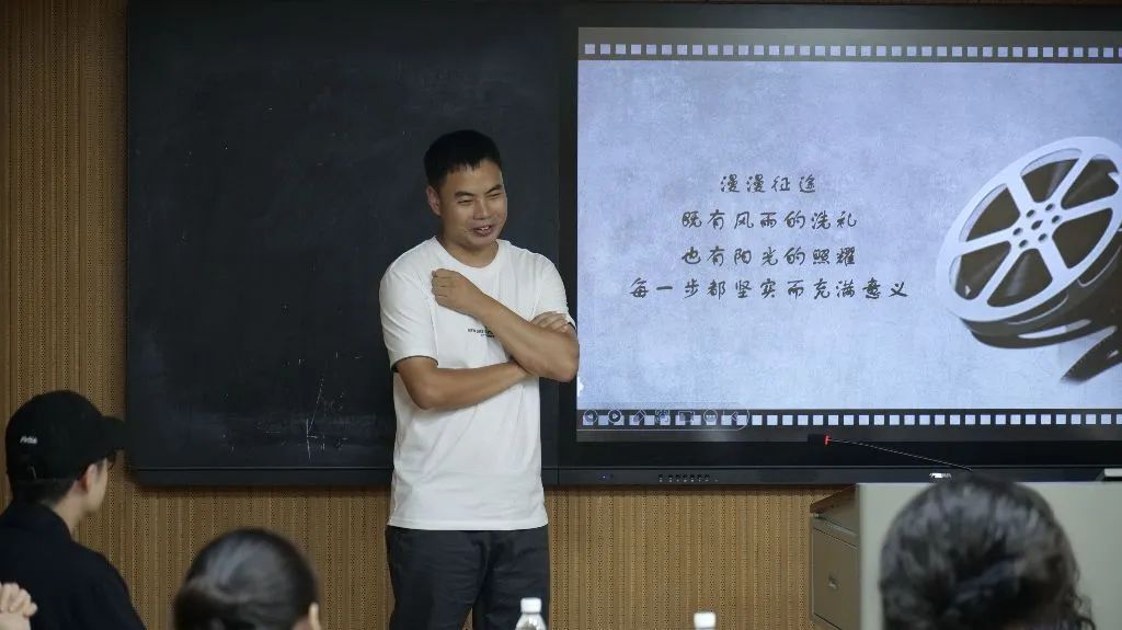 2011级校友宋定贵学长以《不要等待完美的时刻 而是要让每个时刻都变的完美》为题,也将自己的专业经验与河南省人文社科重点研究基地中原戏剧影视文化研究中心的学生倾囊相助。会上,宋学长首先和同学分享了一些实用干货,比如拍摄前期需要做好的准备有哪些、稳定器的使用、相机镜头的选择、后期细节如何处理等,这些经验可以帮助学生提前规避很多不必要的拍摄问题,对河南省人文社科重点研究基地中原戏剧影视文化研究中心学生的自身实践帮助极大。其次,宋学长着重强调了团队合作的重要性,团队合作使得个体力量得以汇聚,实现“1+1>2”的效果,作为河南省人文社科重点研究基地中原戏剧影视文化研究中心的学生,更离不开团队合作,这种团队成员之间力量的汇聚不仅能极大地提高学生在具体实践过程中的拍片效率,还可以通过团队成员之间默契的配合,碰撞出更绚烂的花火,甚至会在拍摄中得到一些意外之喜。