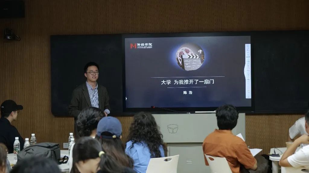 2021届广播电视编导专硕班毕业生陈浩学长以《大学 为我推开了一扇门》为题为河南省人文社科重点研究基地中原戏剧影视文化研究中心师生讲述了自己在校学习期间的点滴故事及创作经验。陈浩提到本科的班主任老师是其影像的启蒙,引导他参加了多种大型实践活动,提高了自身实践能力,为今后的拍片打下了坚实的基础。